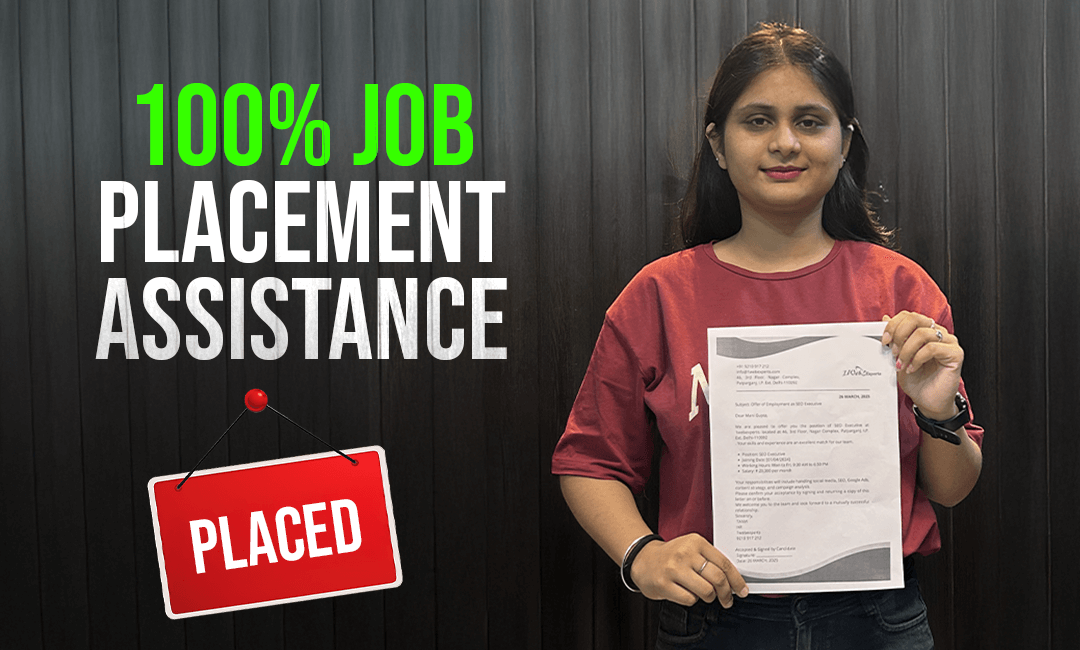 Receive excellent job opportunities from reputed companies through our strong placement network, helping you launch a successful career in Digital Marketing.