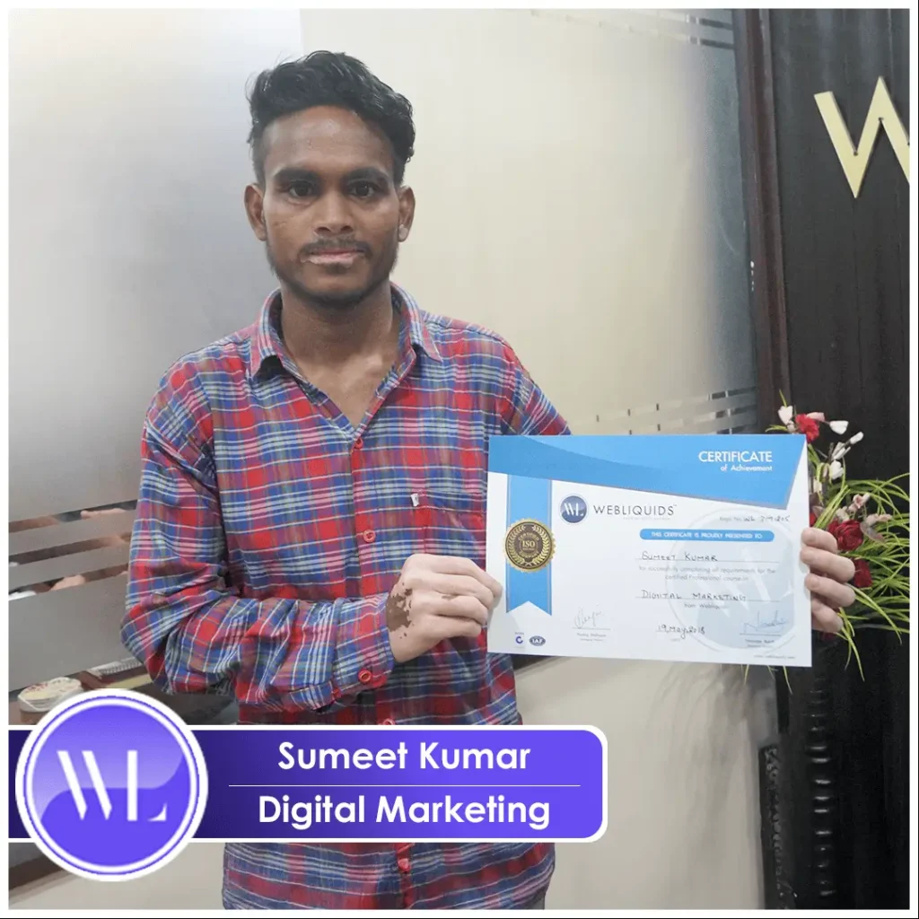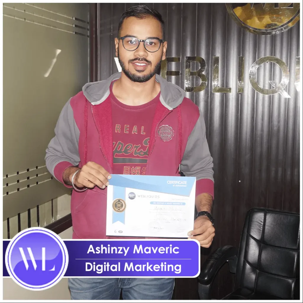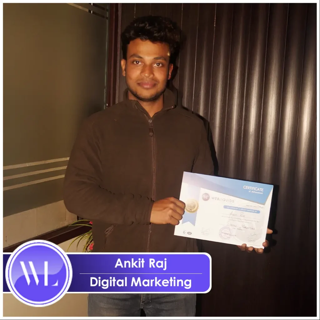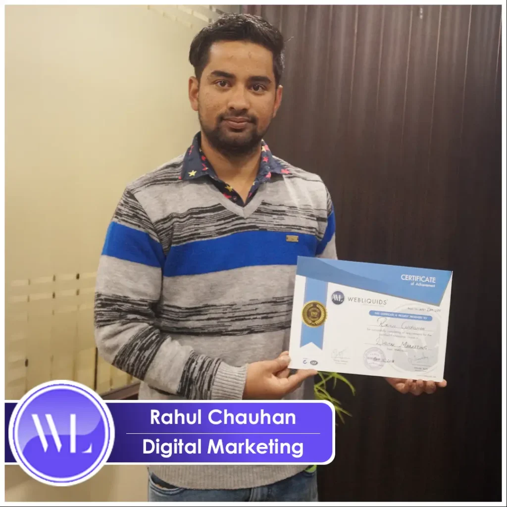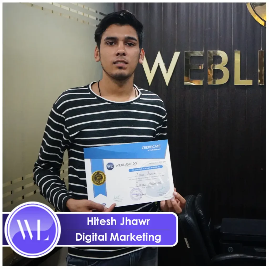 My experience at Webliquids Institute has been truly transformative. The mentors provided in-depth practical training, real project exposure, and constant guidance that helped me build a strong foundation in Digital Marketing. With the knowledge and skills I gained here, I’ve proudly started my own company and continue to grow each day. I’m truly grateful to the entire Webliquids team for their support and motivation throughout my journey.