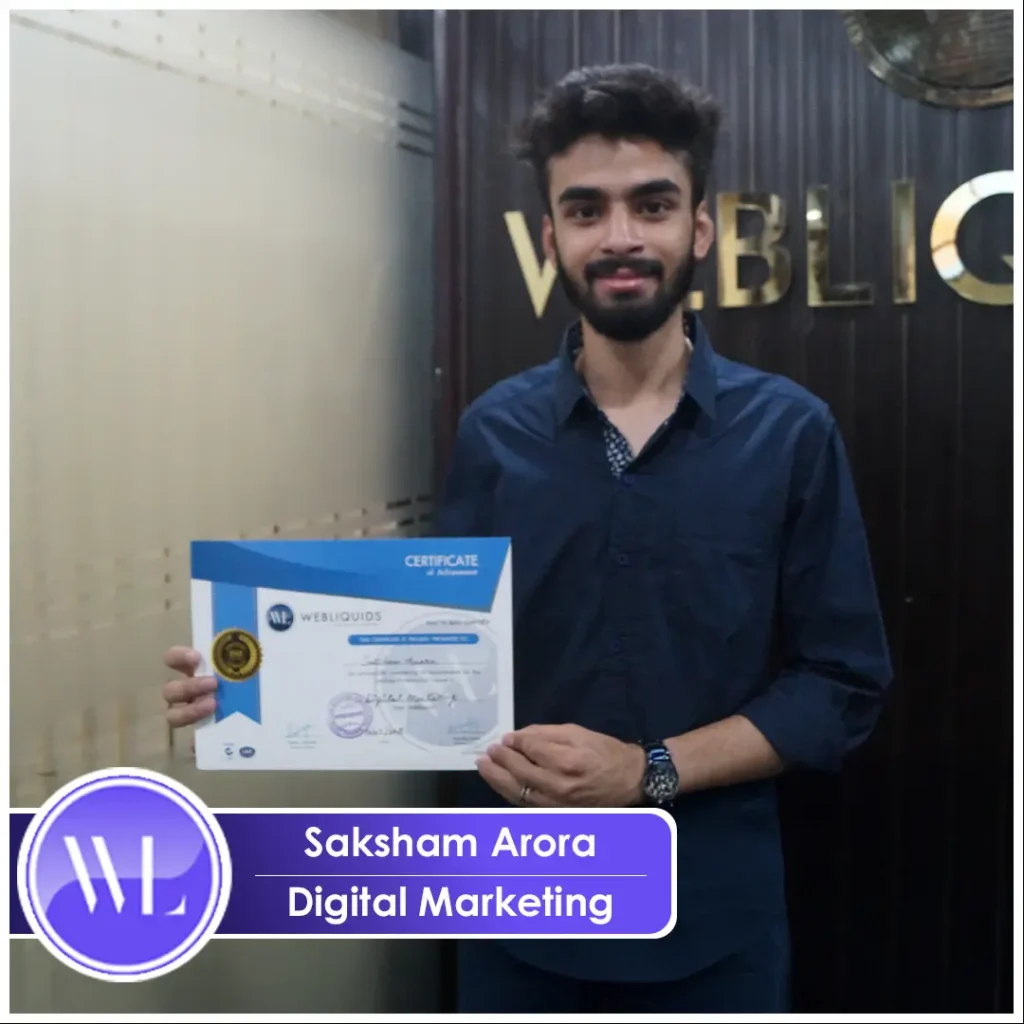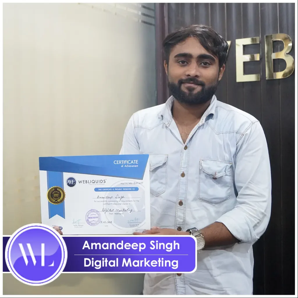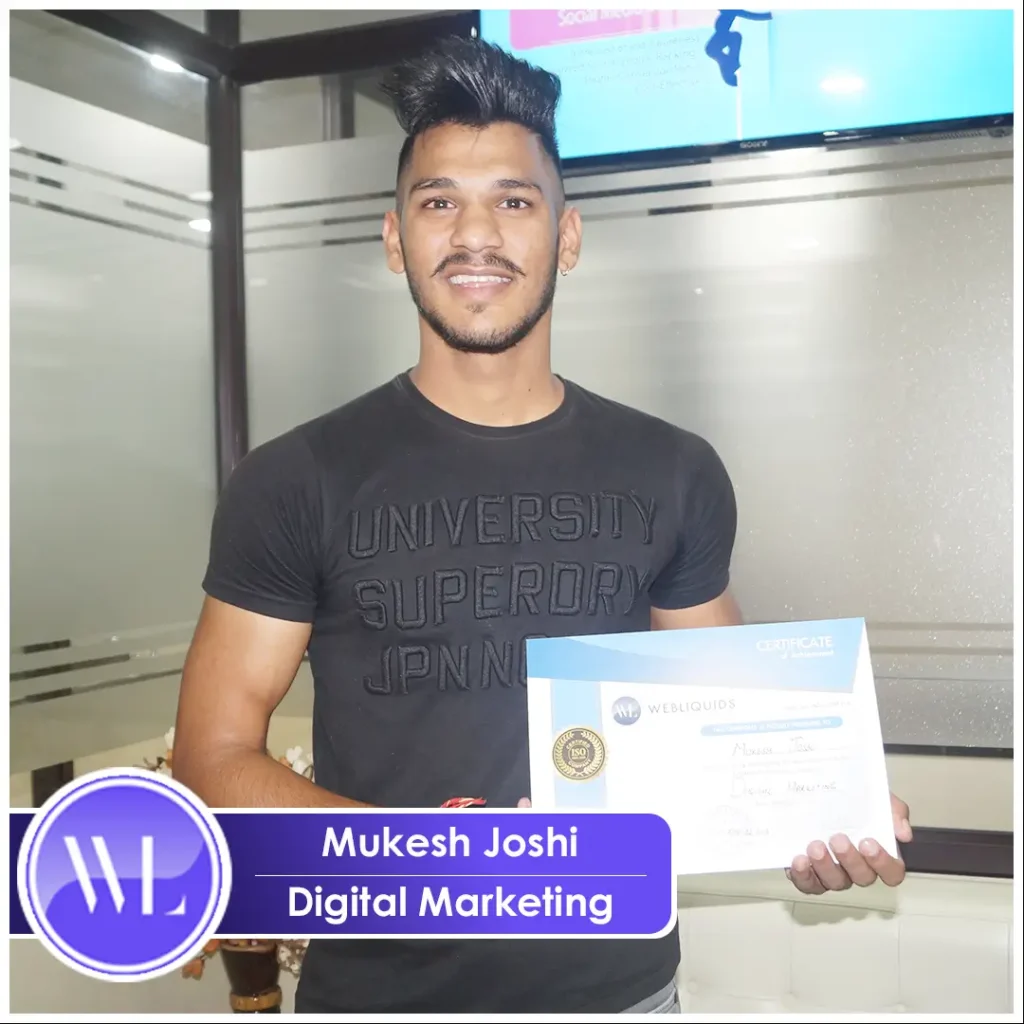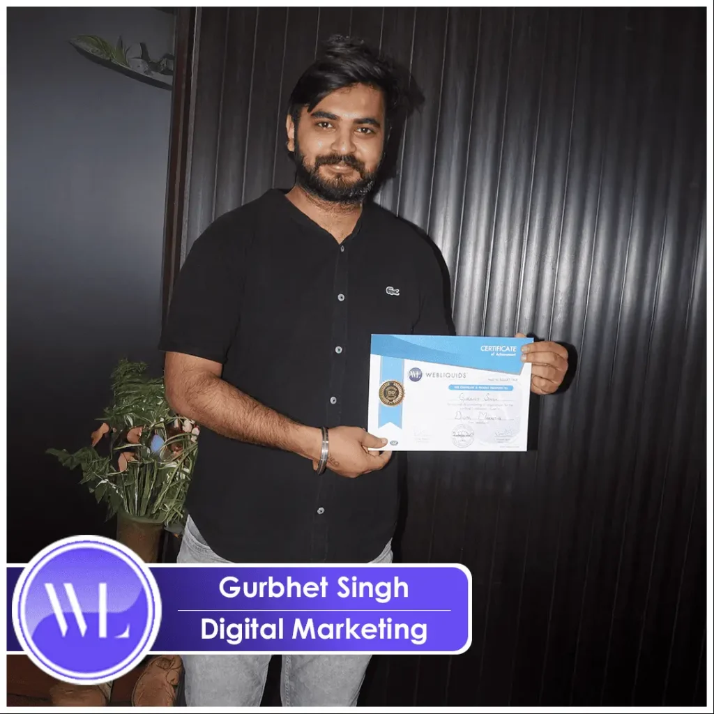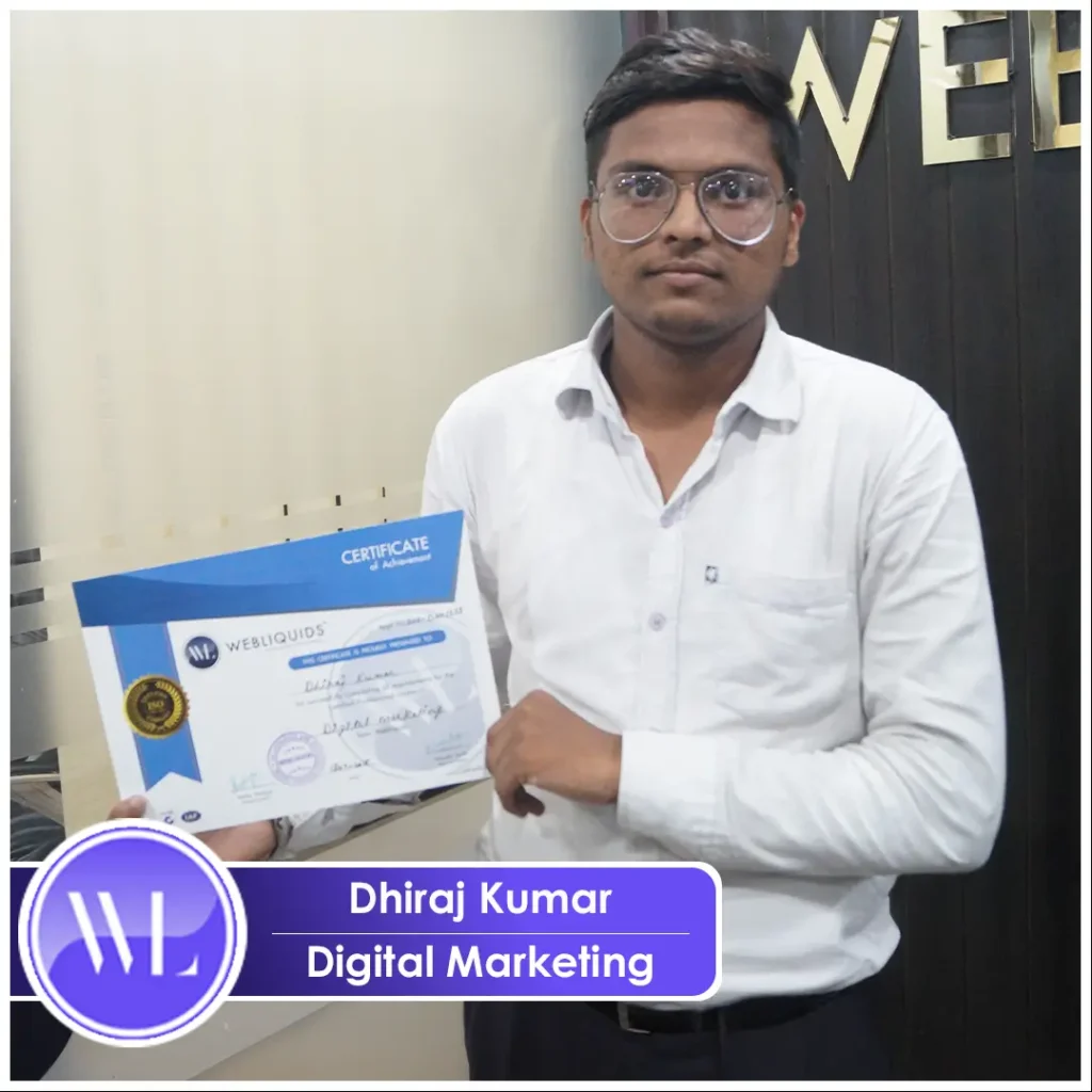 My experience at Webliquids Institute has been truly transformative. The mentors provided in-depth practical training, real project exposure, and constant guidance that helped me build a strong foundation in Digital Marketing. With the knowledge and skills I gained here, I’ve proudly started my own company and continue to grow each day. I’m truly grateful to the entire Webliquids team for their support and motivation throughout my journey.