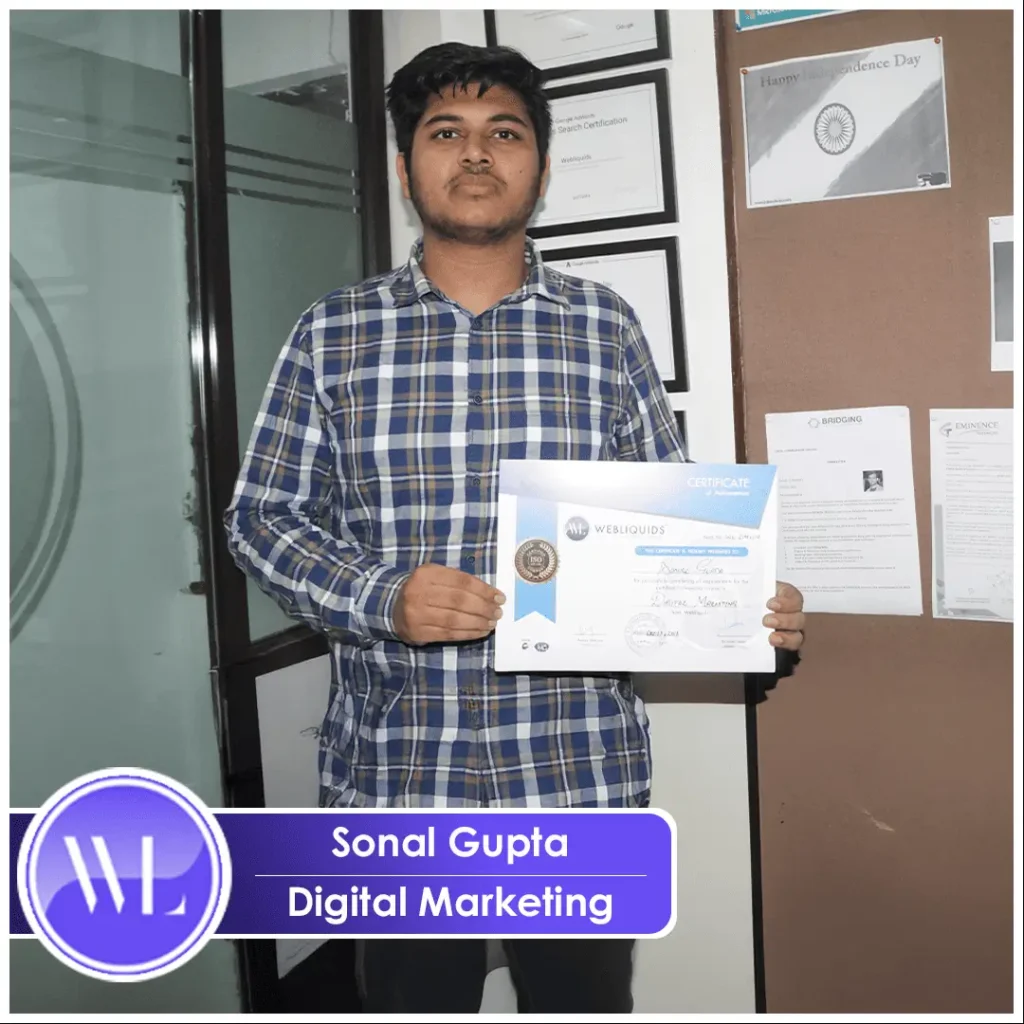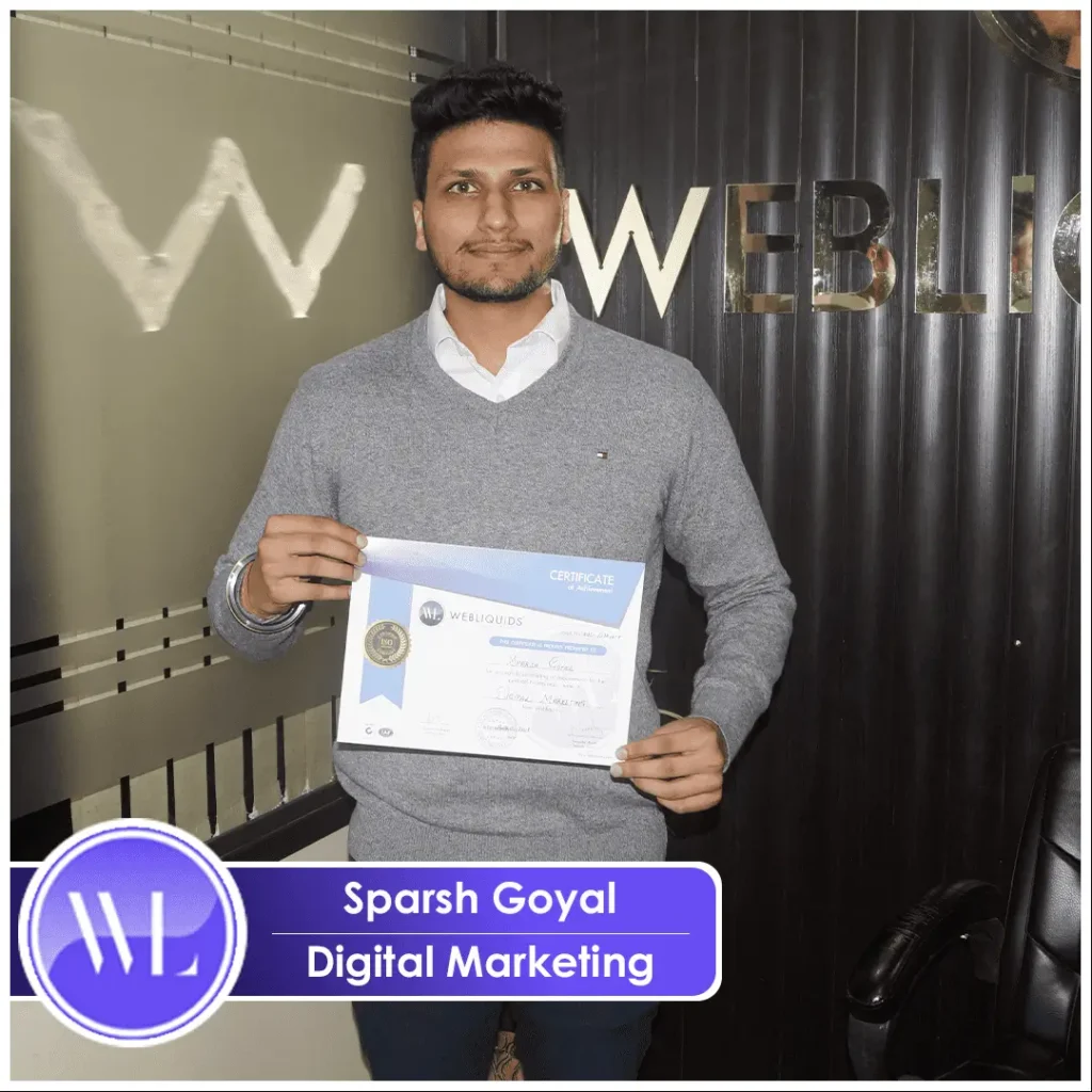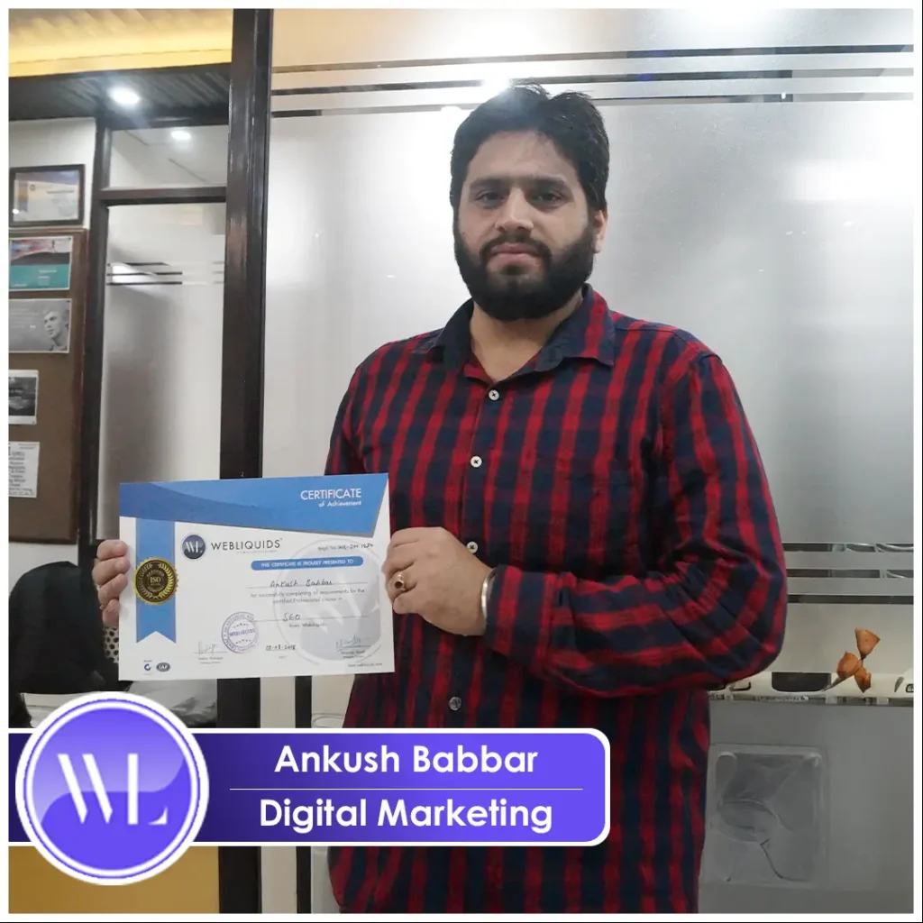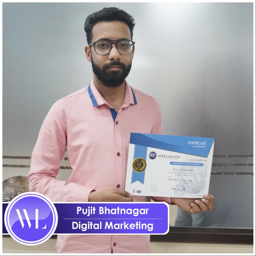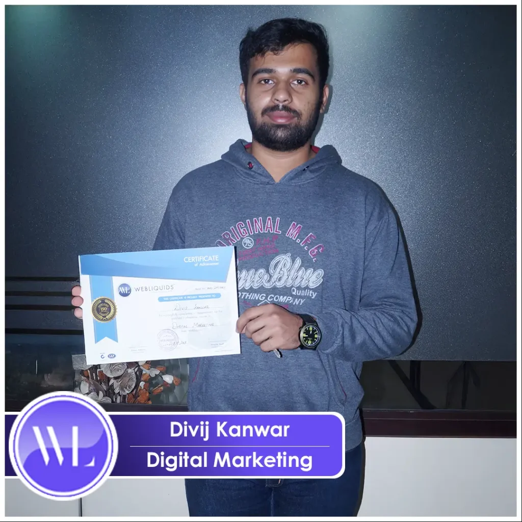 My experience at Webliquids Institute has been truly transformative. The mentors provided in-depth practical training, real project exposure, and constant guidance that helped me build a strong foundation in Digital Marketing. With the knowledge and skills I gained here, I’ve proudly started my own company and continue to grow each day. I’m truly grateful to the entire Webliquids team for their support and motivation throughout my journey.