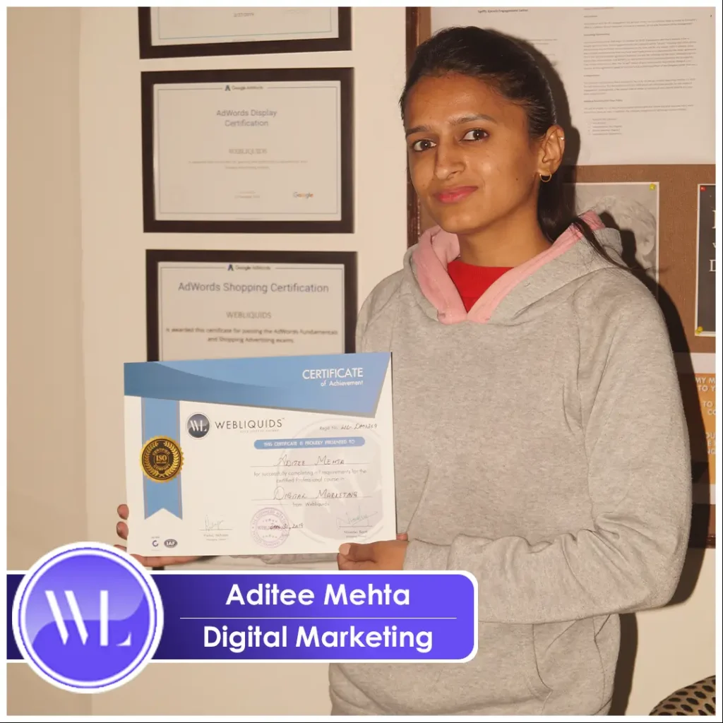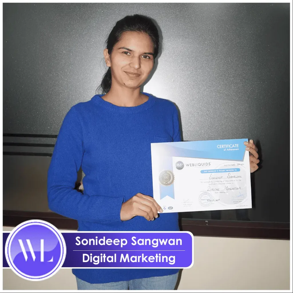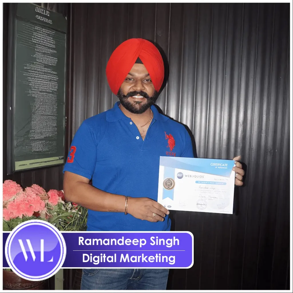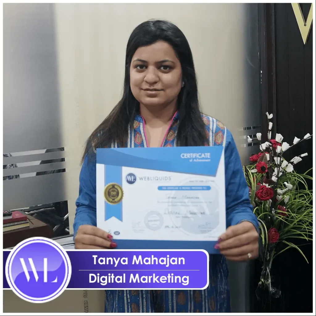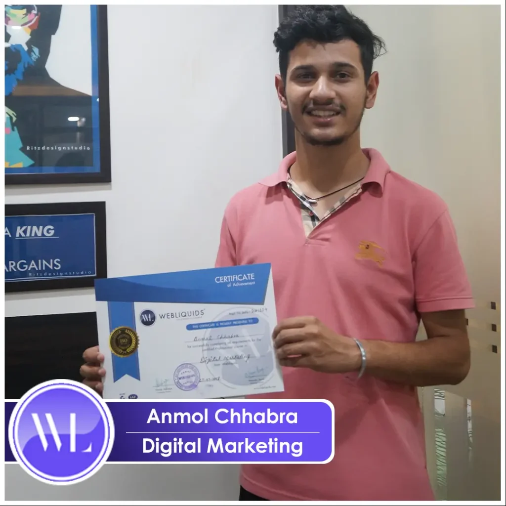 My experience at Webliquids Institute has been truly transformative. The mentors provided in-depth practical training, real project exposure, and constant guidance that helped me build a strong foundation in Digital Marketing. With the knowledge and skills I gained here, I’ve proudly started my own company and continue to grow each day. I’m truly grateful to the entire Webliquids team for their support and motivation throughout my journey.