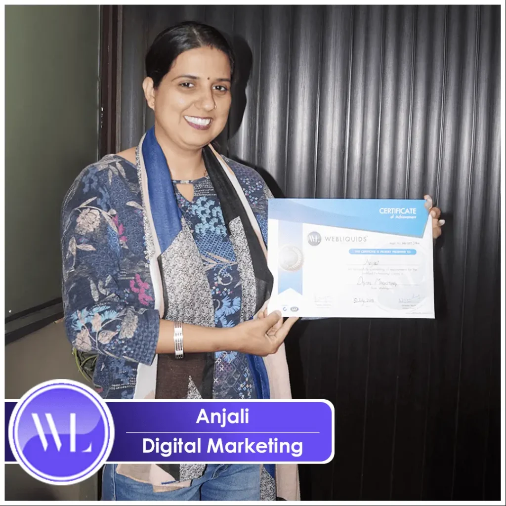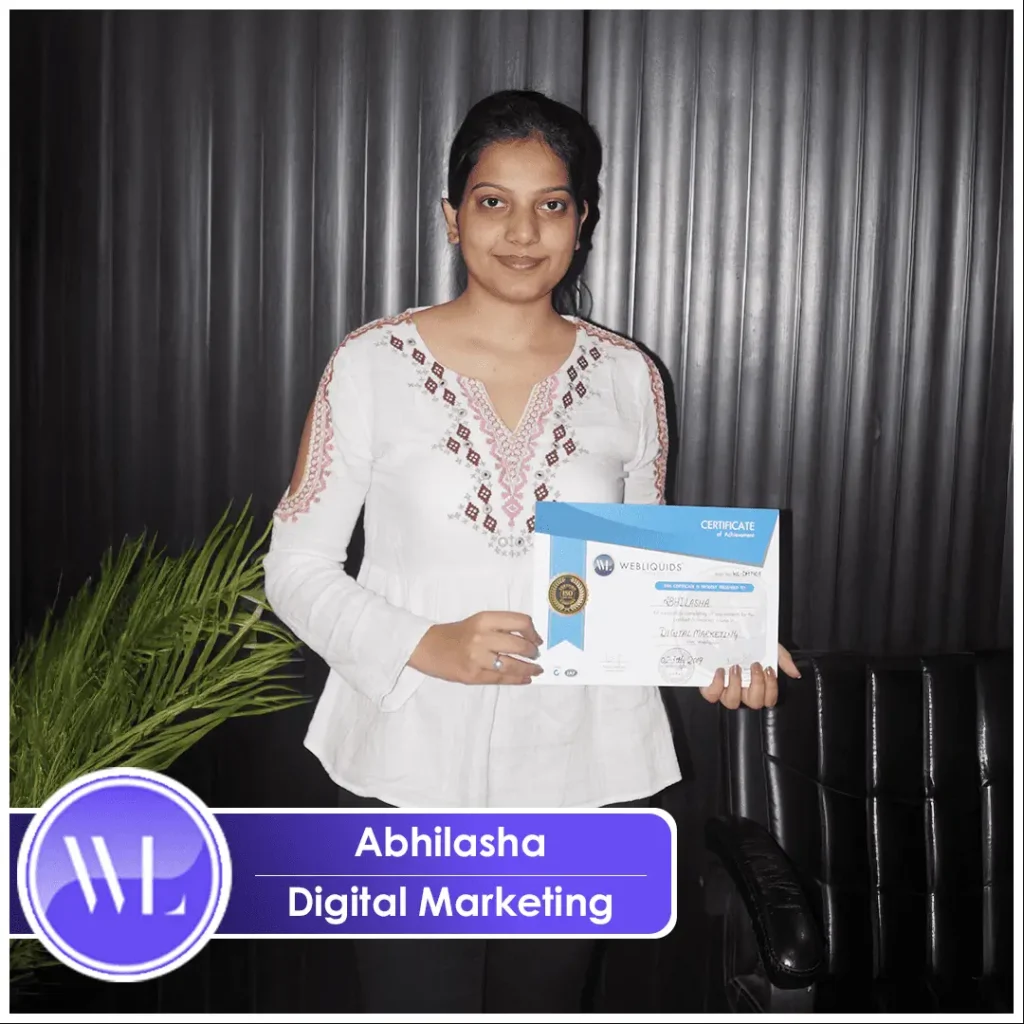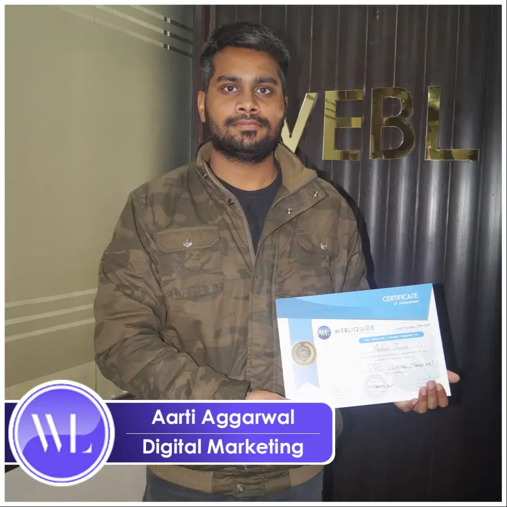 Joining Webliquids Institute was a turning point in my career. The hands-on training, real project exposure, and constant mentorship helped me gain in-depth knowledge of Digital Marketing. With the confidence and skills I developed here, I was able to launch my own company successfully. I’m extremely grateful to the entire Webliquids team for their guidance and support throughout my journey.