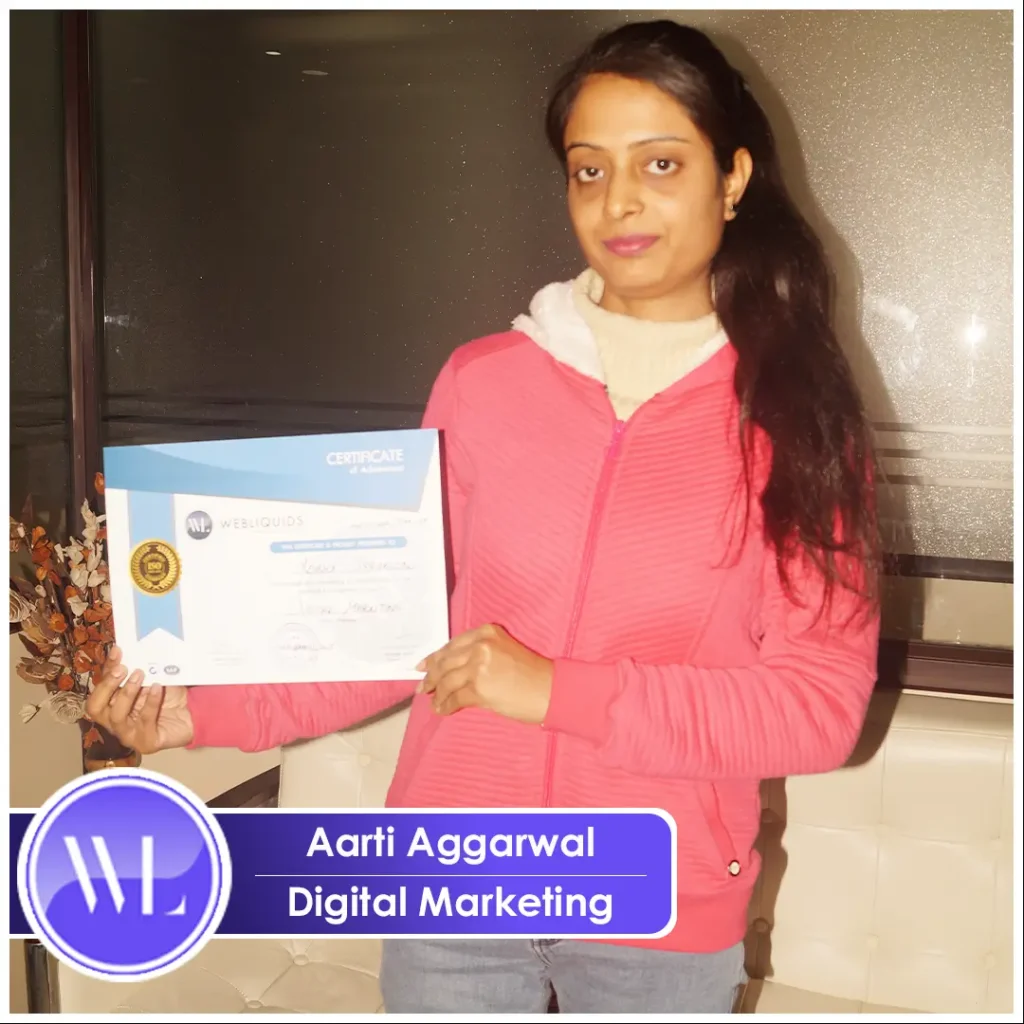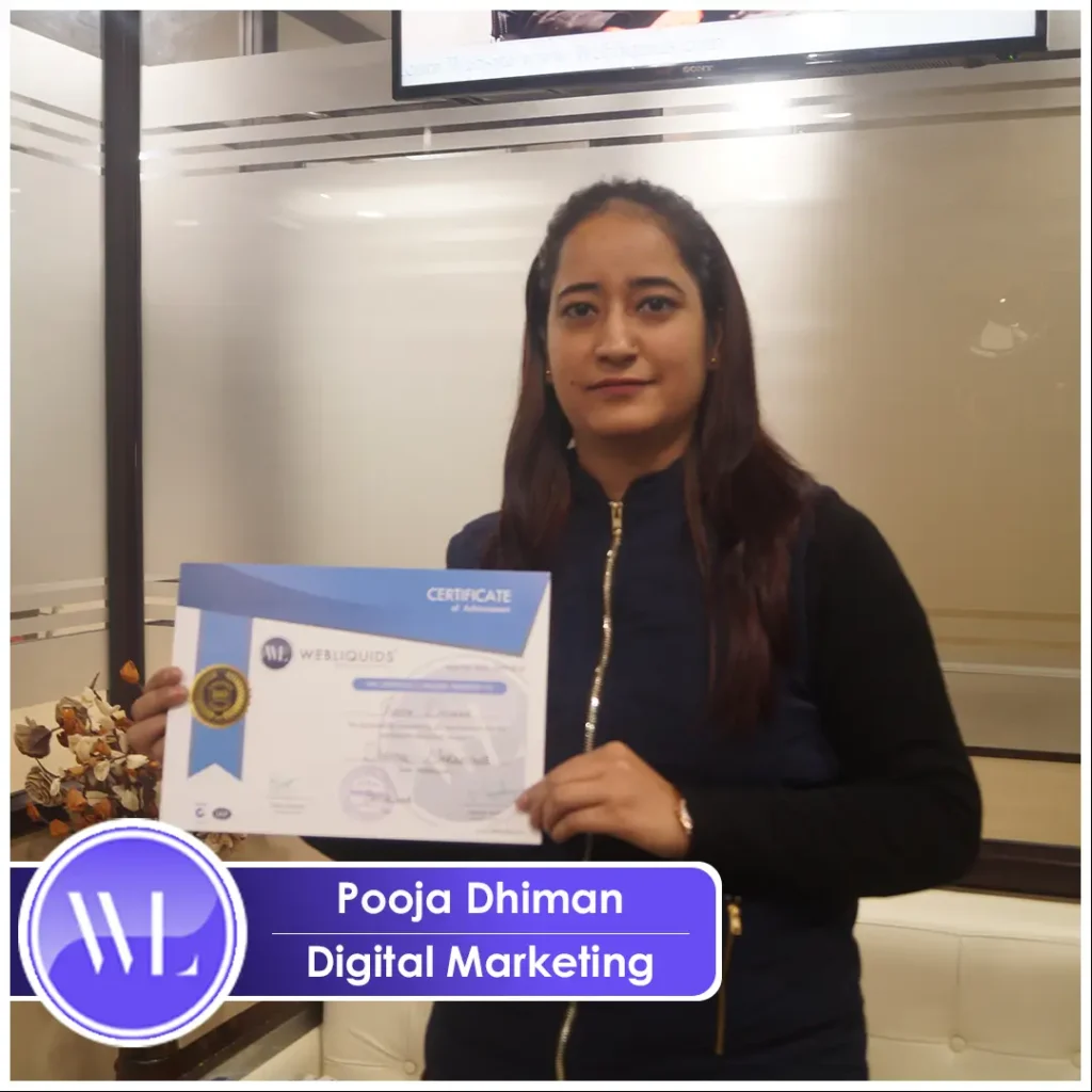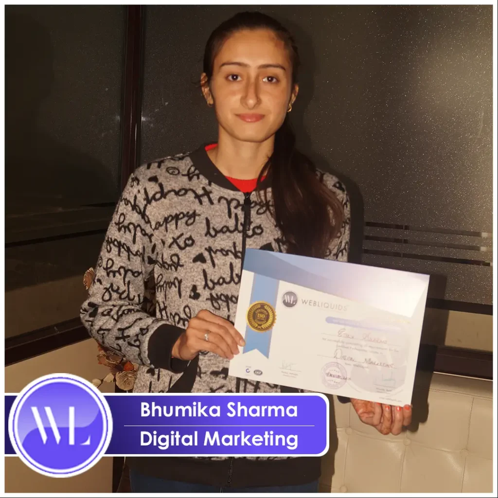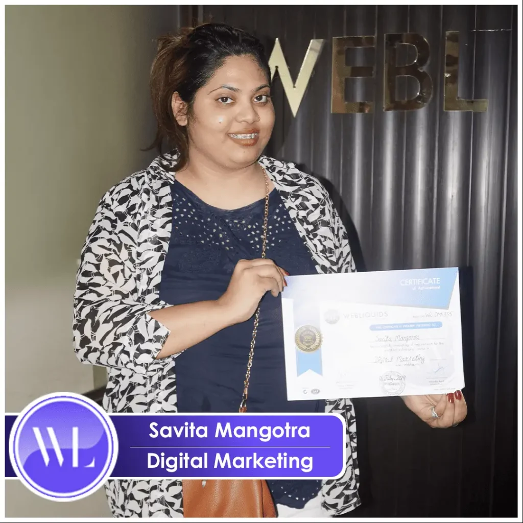 Joining Webliquids Institute was a turning point in my career. The hands-on training, real project exposure, and constant mentorship helped me gain in-depth knowledge of Digital Marketing. With the confidence and skills I developed here, I was able to launch my own company successfully. I’m extremely grateful to the entire Webliquids team for their guidance and support throughout my journey.