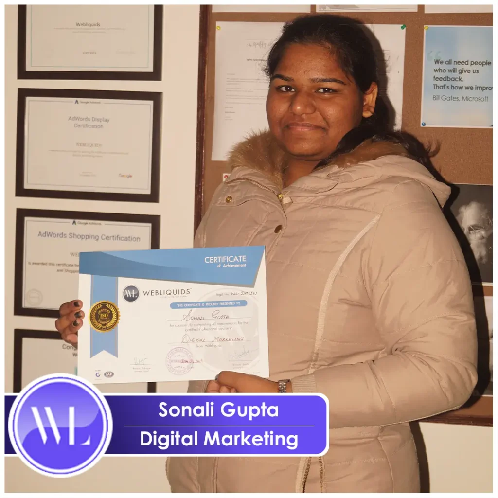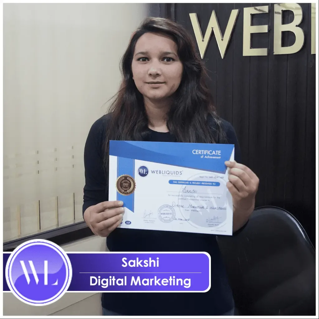Webliquids Institute provided me with the perfect platform to learn, grow, and explore my potential in Digital Marketing. The practical training, expert guidance, and real-time project experience gave me the confidence to start my own venture. Today, I’m running my own company successfully, and I owe a huge part of my journey to the amazing mentors and team at Webliquids.