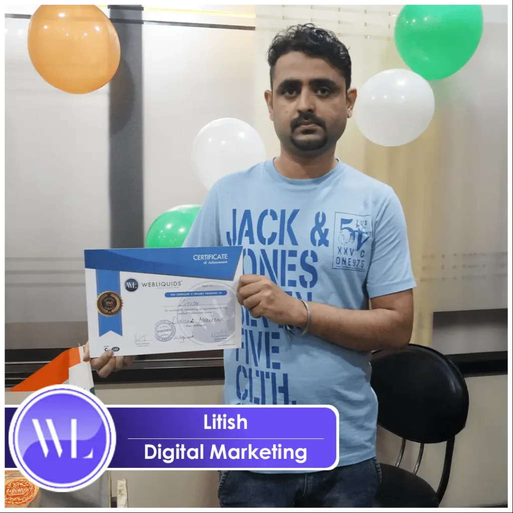 My journey with Webliquids Institute has been life-changing. I joined with the goal of learning Digital Marketing, and the practical training, experienced mentors, and real-time project work gave me the skills and confidence I needed. Today, I’m proud to say that I’ve started my own company. Webliquids played a major role in helping me build a strong foundation. Thank you to the entire team for guiding me throughout my journey.