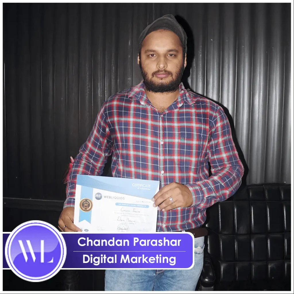 Joining Webliquids Institute was one of the best decisions of my life. The trainers here focus on practical knowledge and real industry skills, which helped me gain valuable hands-on experience in Digital Marketing. With their constant support, guidance, and motivation, I was able to build the confidence to successfully start my own company and grow steadily. A big thank you to the Webliquids team for shaping my career.